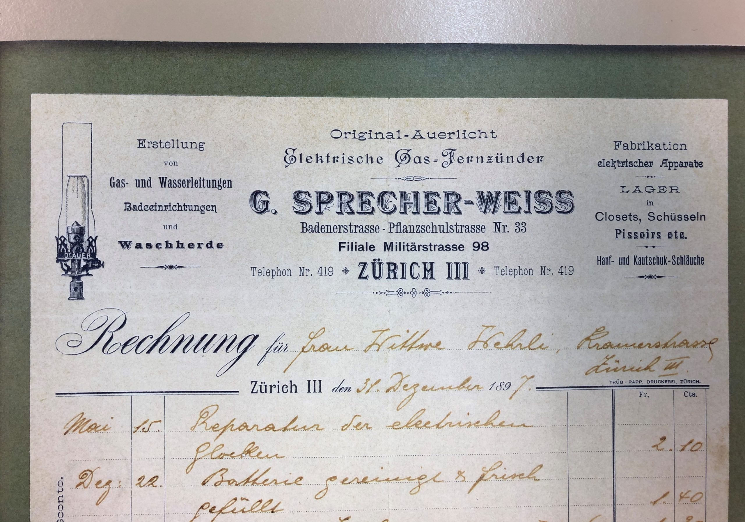 wird das Unternehmen erstmals im Handelsregister unter Hans Sprecher, Sanitäre-Anlagen, Pflanzschulstrasse 37, Zürich 4, aufgeführt und erwirbt im gleichen Jahr die Gas-und Wasserkonzession.